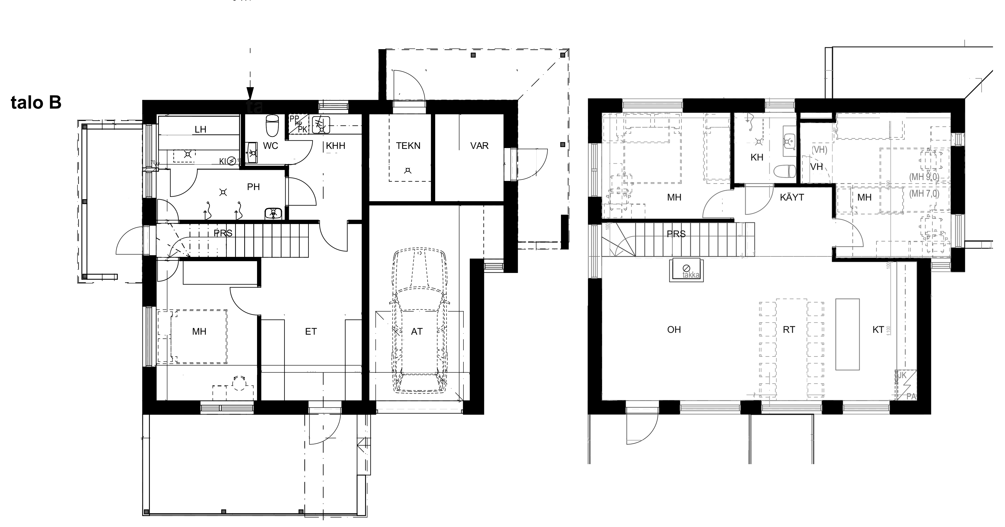 Esittelyssä talo B. Tämä koti on suunniteltu ilman hukkaneliöitä, tarjoten asukkailleen sekä käytännöllisyyttä että viihtyisyyttä. Moderni arkkitehtuuri ja järkevä tilankäyttö yhdistyvät luoden toimivan ja mukavan kodin kaikille sen asukkaille.