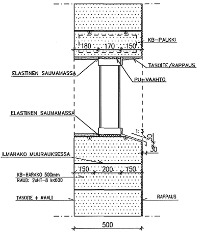 Massiivinen kevytbetonirakenne toimii samalla myös rakenteen höyrynsulkuna, joten erillistä höyrynsulkukerrosta ei tarvita rakenteen sisäpinnassa.