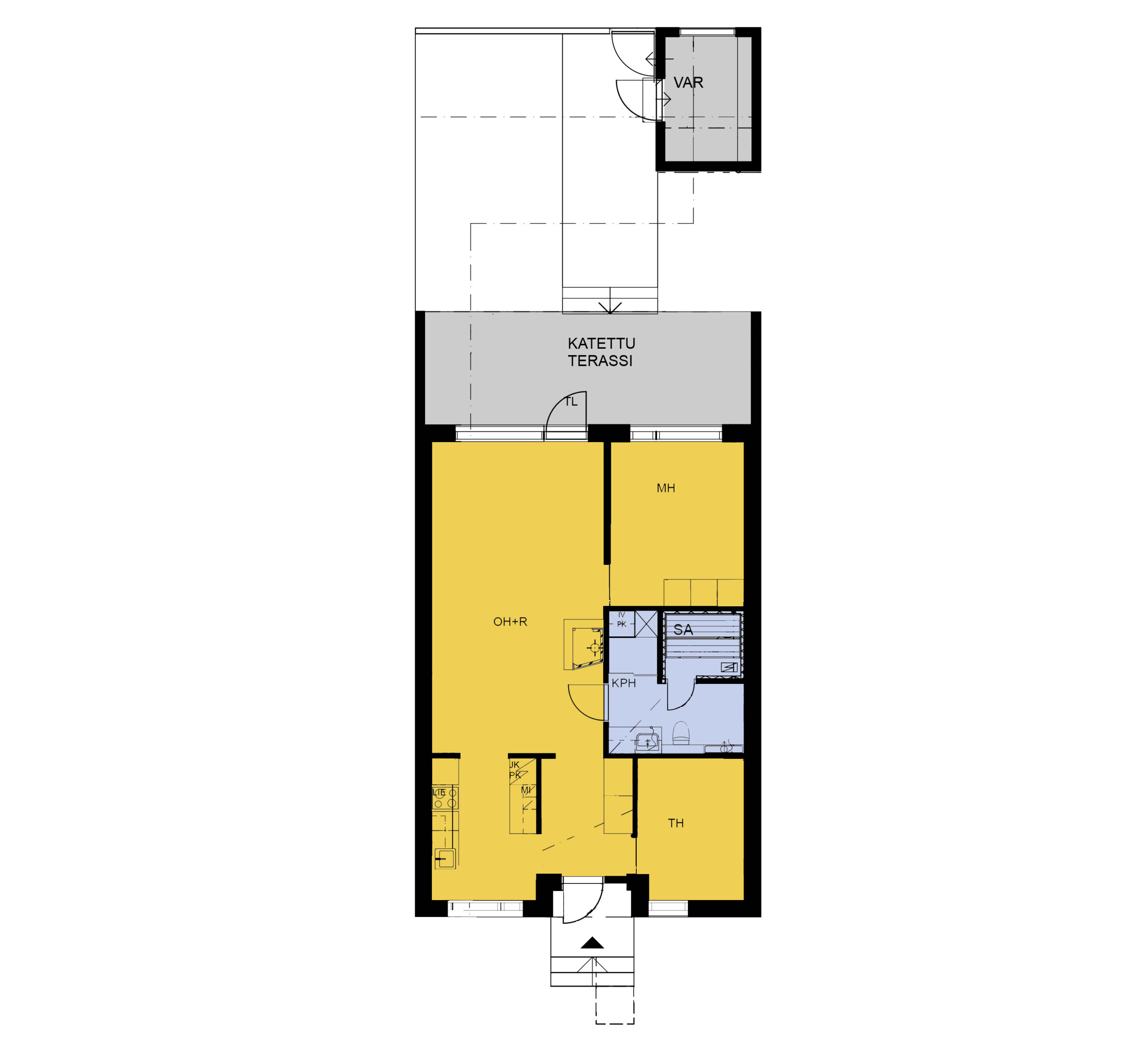 Jämerä Laventeli on moderni kolmen huoneen koti, jossa keittiö, sauna ja ulkovarasto muodostavat toimivan kokonaisuuden. Avarat tilat ja suuret ikkunat tuovat sisään runsaasti luonnonvaloa, luoden valoisan ja ilmavan tunnelman.