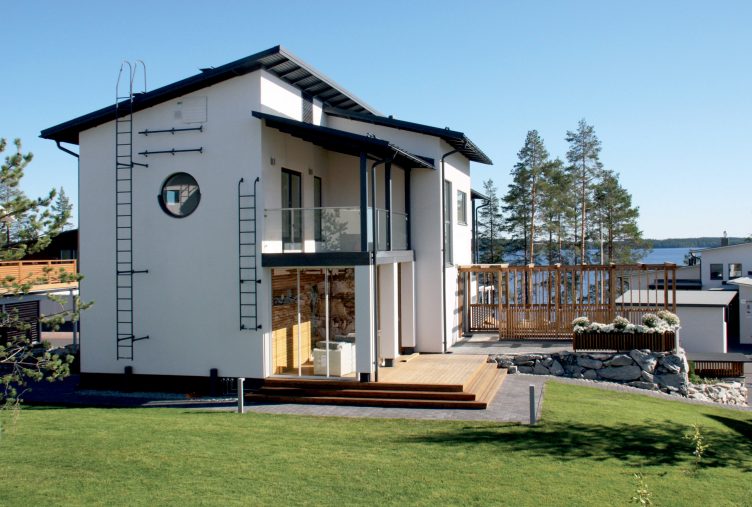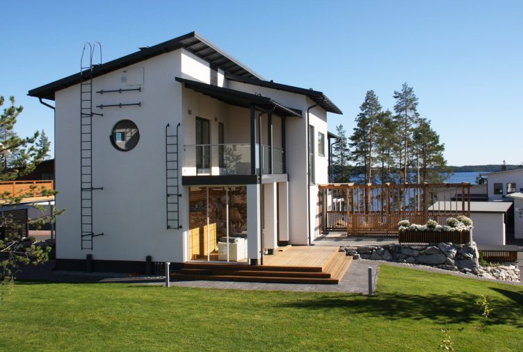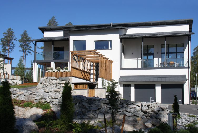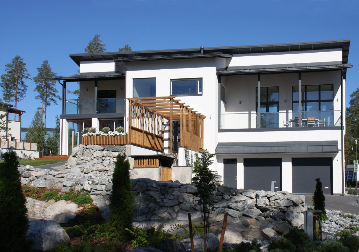 Jämerä Lumi on arkkitehtonisesti upea, klassinen koti, jossa yhdistyvät tilavuus ja valoisuus. Korkeat, suuret ikkunat avautuvat kauniisiin maisemiin, tuoden runsaasti luonnonvaloa sisätiloihin ja luoden ilmavaa tunnelmaa. Ulkoapäin talo hurmaa minimalistisella ja skandinaavisella estetiikallaan, jossa valkoisen julkisivun kontrastina toimii tyylikäs puusäleikkö ja kivipinta. Kodin huoneet ovat avaria, ja oleskelutila tarjoaa upeat näkymät ja toimii samalla kodin sydämenä. Talossa yhdistyvät käytännölliset ratkaisut ja esteettinen kauneus – ihanteellinen koti modernia ja tyylikästä asumista arvostavalle perheelle.