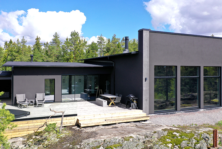 Jämerä Sipoo on tyylikkäästi luonnon keskelle sijoittuva kivitalo, jonka voi rakentaa sekä tasamaatontille että loivaan rinteeseen. Moderni arkkitehtuuri ja avara pohjaratkaisu tekevät siitä ajattoman kokonaisuuden. Olohuone, keittiö ja ruokailutila muodostavat 3,7 metriä korkean yhtenäisen tilan, joka avautuu suurelle ja suojaisalle terassille – talon omalle kesäkeitaalle. Talon molemmissa siivissä on tyylikkäät pulpettikatot, ja olohuonesiiven päätyjulkisivu on näyttävä muurimainen elementti, joka toimii talon katseenvangitsijana ja antaa sille ainutlaatuisen ilmeen.