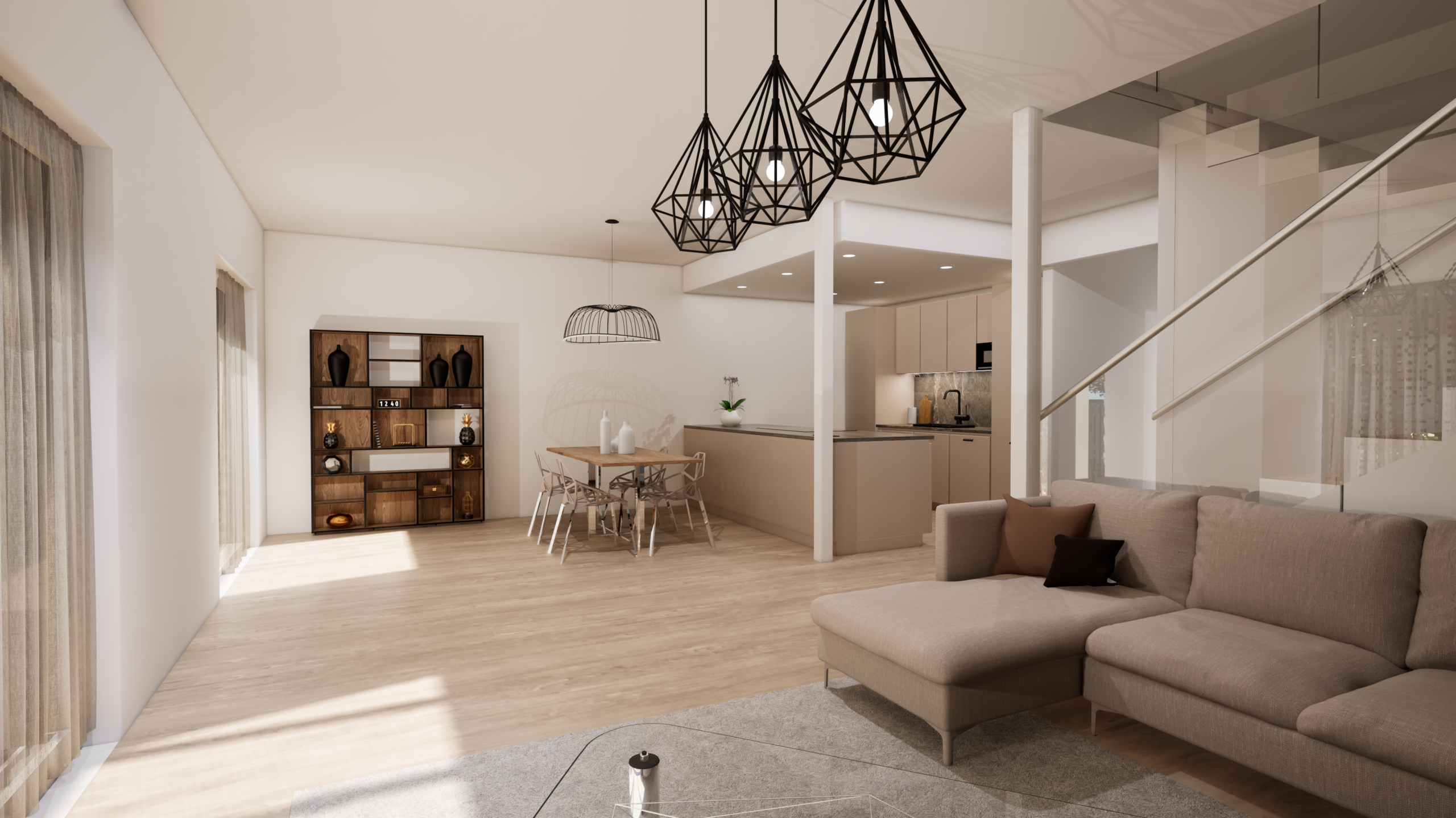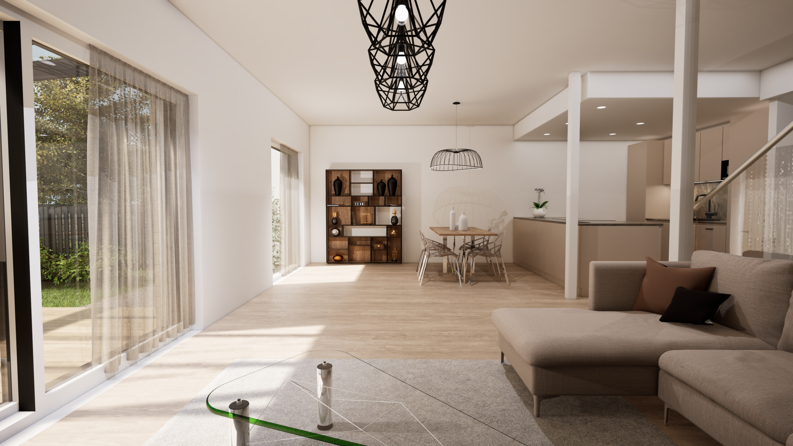 Kaupunkipientalo Talo D tarjoaa 134 m² modernia ja harkittua asumista kahdessa kerroksessa. Kodin sydämen muodostaa ensimmäisen kerroksen valoisa olohuone, ruokailutila ja avokeittiö, joista on suora yhteys katetulle terassille. Suuret ikkunat tuovat sisään luonnonvaloa ja tekevät arjesta avaraa ja viihtyisää.