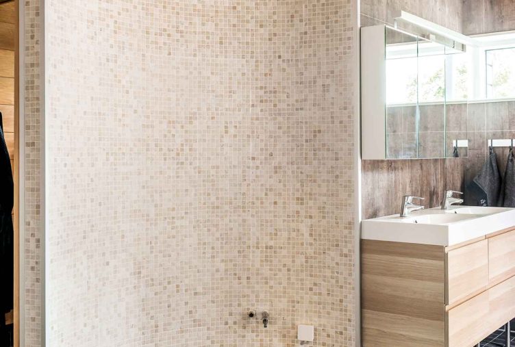 Sisustus on harmoninen yhdistelmä modernia ja luonnonläheistä tyyliä, jossa puupinnat tuovat tilaan lämpöä ja tekstuuria. Laaja terassi avautuu suoraan oleskelutiloista, tarjoten yhteyden ulkotiloihin ja mahdollisuuden nauttia luonnosta suoraan omalla pihalla. Suuret ikkunat tuovat sisään valoa ja luovat jatkuvan yhteyden ympäröivään maisemaan.