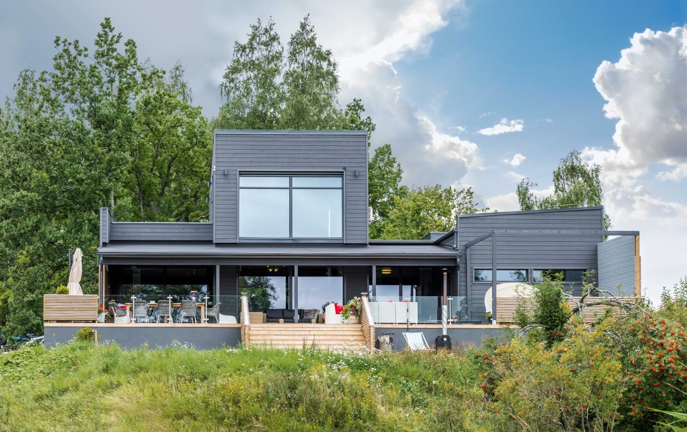 Jämerän Turun kohde yhdistää modernin arkkitehtuurin lämpimään ja kodikkaaseen tunnelmaan. Tumma ulkoverhous ja suuret ikkunapinnat tekevät talosta vaikuttavan ja tyylikkään, ja sisätiloissa korostuu kodikas ja kutsuva ilmapiiri. Avara olohuone, jossa korkea katto ja näyttävä takka, luo täydellisen tilan rentoutumiseen sekä perheen ja ystävien yhteisiin hetkiin.