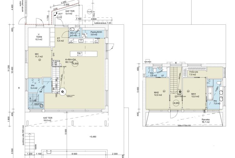 Talotekniikka: Maalämpöpumppu vesikiertoinen lattialämmitys. Koneellinen ilmanvaihto LTO:lla